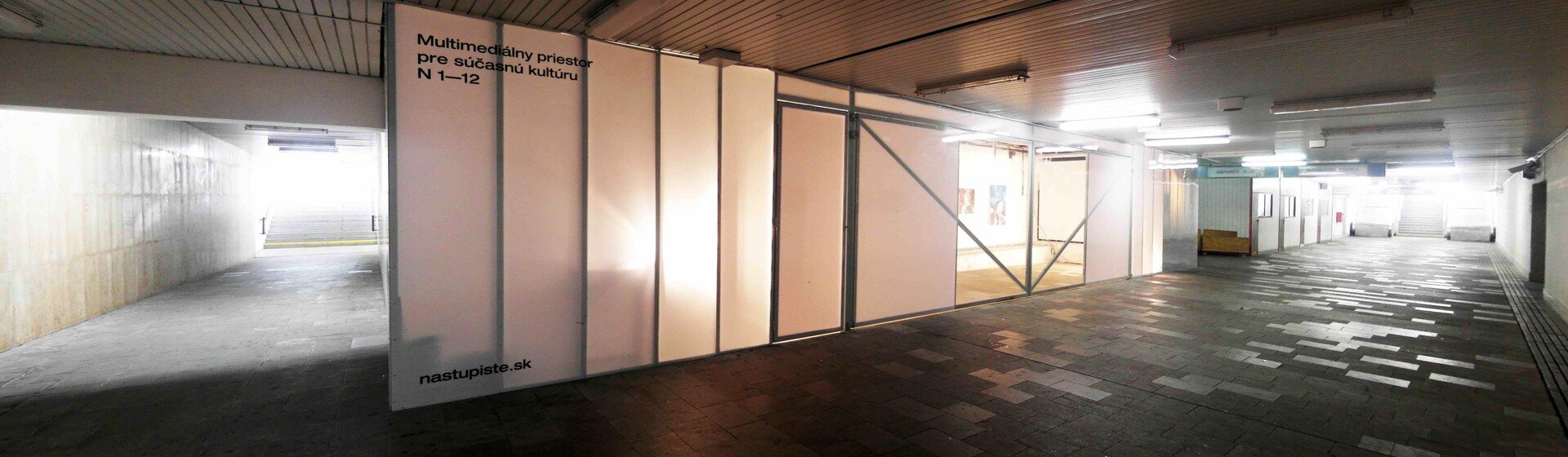 Multimedia space for contemporary culture Nástupište 1-12, located in a 300-meter-long functional underpath beneath the bus station in the town of Topoľčany, Slovakia